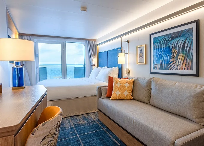 D3 - Kajuta s balkónom Ocean View 19 m² + 4,5 m² balkón s výhľadom na more. 7,8,10. až 12. paluba. Max 4 osoby. 5 476 € 1 369 € za osobu