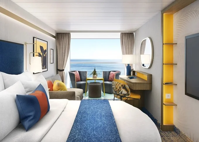 VP - Panoramic Suite 34-41 m². Veľké panoramatické neotvárateľné okno s výhľadom na more. 16,17. paluba vpredu. Max 4 osoby. Výhody Royal Suite Sky class. 9 904 € 9 904 € za osobu