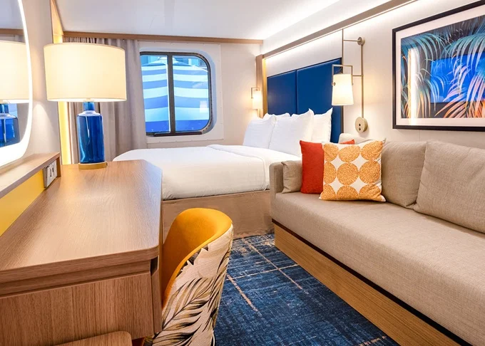 T5 - Vnútorná kajuta s oknom / Surfside Family 17 m². Neotvárateľné okno s výhľadom na štvrť Surfside. 8. paluba vpredu. Max 4 osoby. 3 052 € 1 526 € za osobu