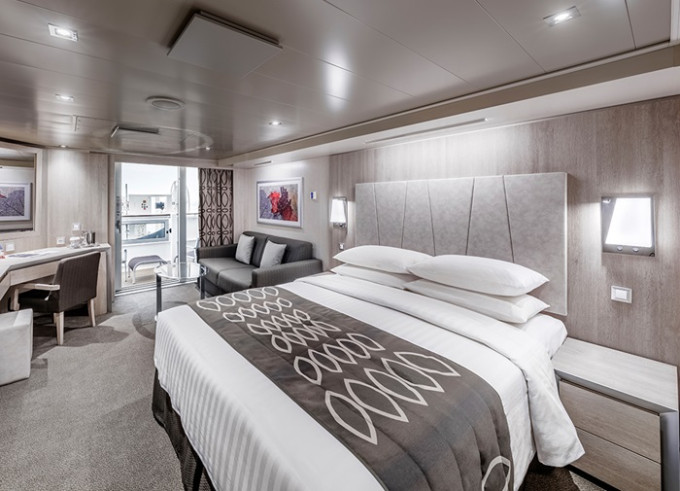 Balkónová kajuta: 16 -17 m², kajuta s manželskou posteľou (na požiadanie 2 oddelené postele) a rozkladacia pohovka. Klimatizácia, kúpeľňa so sprchou alebo vaňou a WC, toaletný stolík, priestranná skriňa, interaktívna TV, telefón, trezor, sušič vlasov, virtuálna asistentka ZOE. Balkóny so stolíkom a stoličkami. Niektoré kajuty majú obmedzený výhľad.