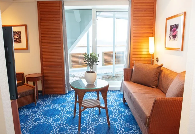 SJB - Junior Dream Suite s balkónom kajuta 21 m² / balkón 6 m² . Max 3 osoby, 9. paluba. Stolovanie vo vyhradenej časti reštaurácií Smoked Olive a Pink Moon. 4 198 € 2 099 € za osobu