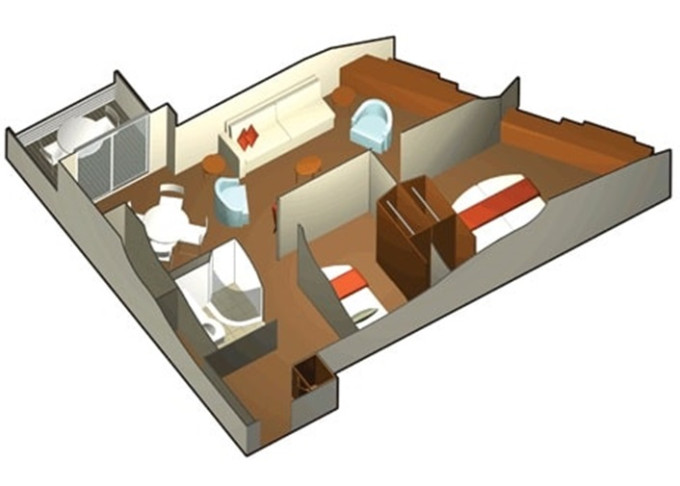 | CS - Celebrity Suite 37 m² + balkón 10 m². 10,11. paluba. Max 4 osoby.Výhody Suite. | 14 316 € 3 579 € za osobu | ||
